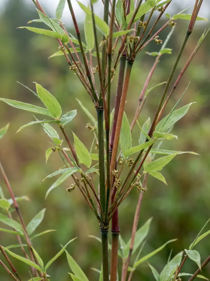 Bambus wird für sein exotisches Aussehen und seinen immergrünen Charakter geliebt. Insbesondere die nicht-invasiven Fargesia-Sorten eignen sich perfekt für Hecken oder als Einzelpflanze im Topf. Bambus wächst schnell und bietet sofortige Privatsphäre, während das feine Laub Ihrem Gartendesign eine elegante Textur verleiht. Es ist eine starke Pflanze, die wenig Pflege erfordert und an den meisten Standorten gedeiht.
