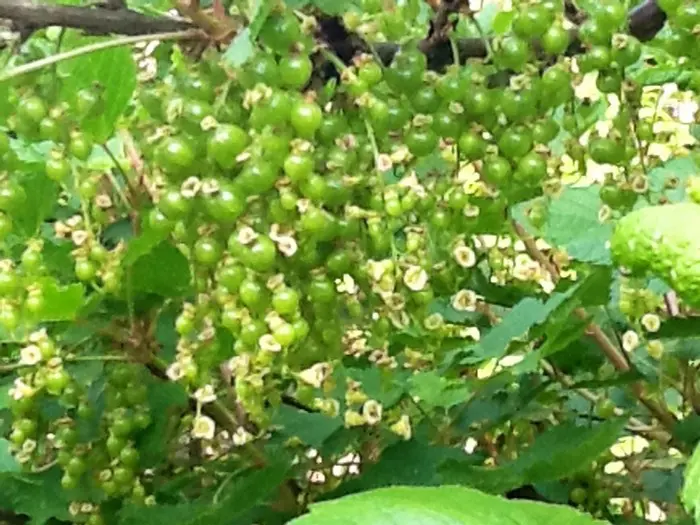 Pflücken Sie die Beeren nicht, bevor sie ausreichend Farbe zeigen. Der Geschmack ist viel besser. Beim Ernten pflückst du die ganzen Büschel ab und entfernst danach die Stängel von den Beeren.