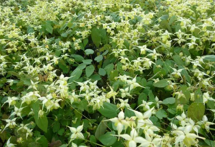 Epimedium Flower oder Sulphur' ist eine Mischung aus E. flavum und E. ogisui.