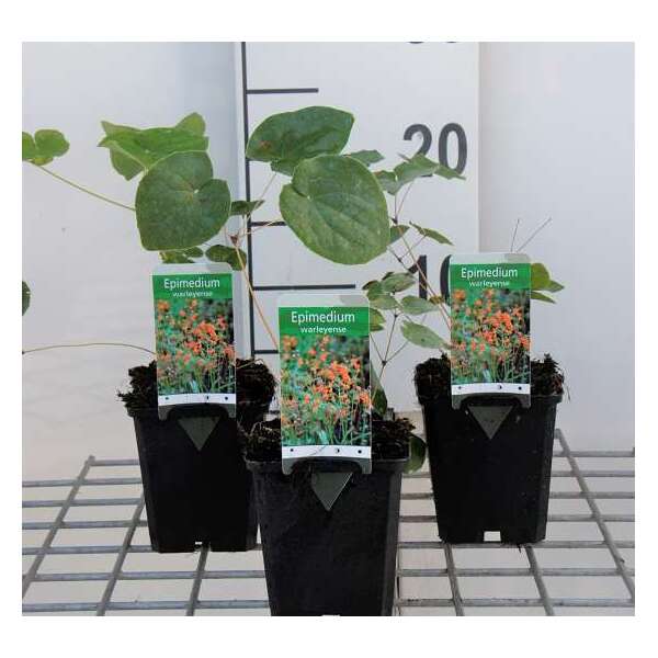 Epimedium warleyense ist eine immergrüne Art mit ursprünglich kupferfarbenen, roten, orangen und gelben Blüten im Frühling.