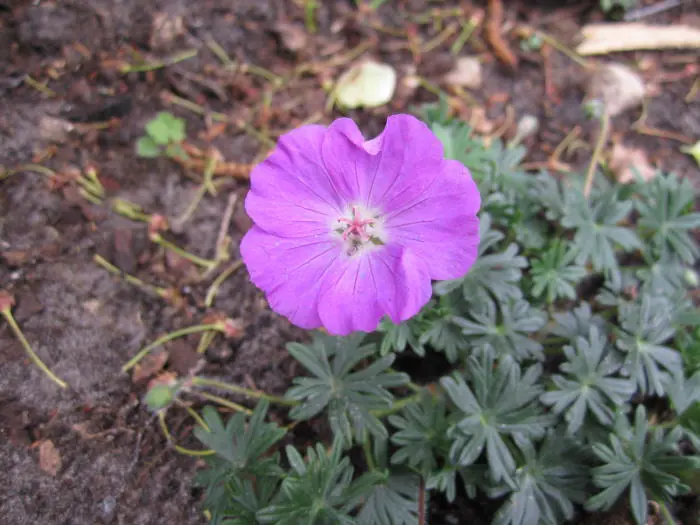 Eine Geranium, die sich in trockenem, nicht zu fruchtbarem Boden gut gedeiht.