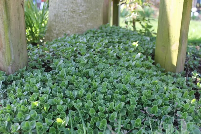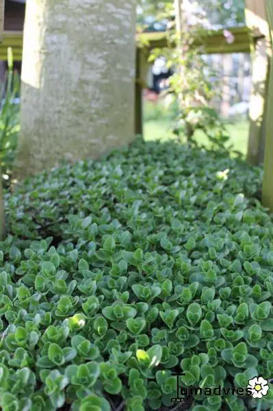 Sedum spurium ist eine mehrjährige Pflanze mit kriechenden Stängeln und kleinen, sukkulenten, halbimmergrünen Blättern. Die Blätter wechseln im Laufe des Jahres von hellgrün zu rot und violett.
