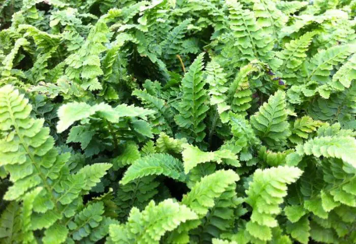 Polystichum setiferum 'Congestum' ist ein kleiner Farn mit kräftigen, stämmigen dunkelgrünen Blättern.