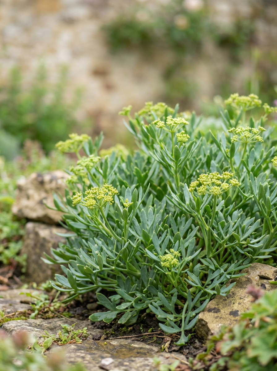 Crithmum maritimum ist essbar und wird beim Kochen verwendet.Sie schmecken wie Spargel und enthalten viel Vitamin C.Ernte im Mai.Schützen Sie die Pflanze vor starkem Frost.