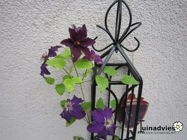 Clematis 'Rasputin' ist eine späte großblühende Clematis mit violetten Blüten.Schneiden Sie im März bis zu 30 cm vom Boden entfernt (Schnittgruppe3).