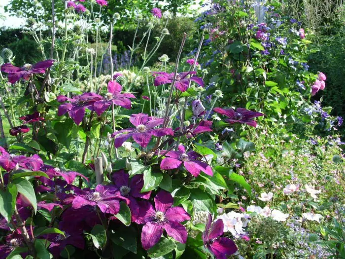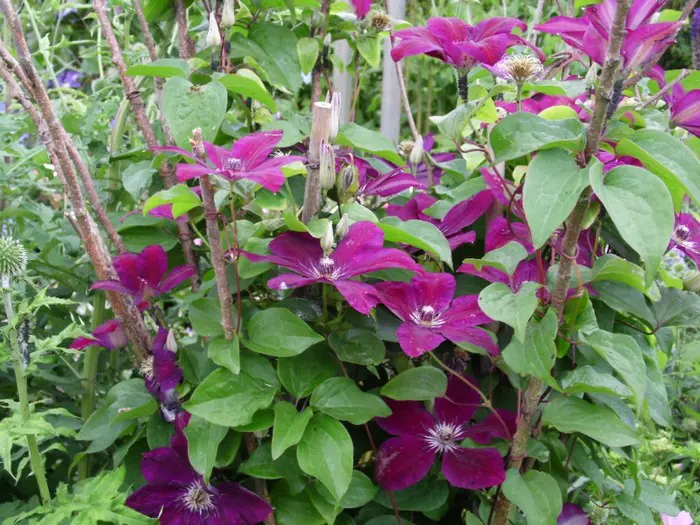 Clematis 'Westerplatte' ist eine frühe großblühende Clematis aus der Patens-Gruppe.