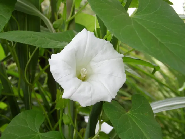 Convolvulus sepium ist ein hartnäckiges Unkraut, das es zu bekämpfen gilt.Kommt hauptsächlich auf feuchten und nährstoffreichen Böden wie Sümpfen, Feldern, Waldrändern und sogar in Gärten vor.