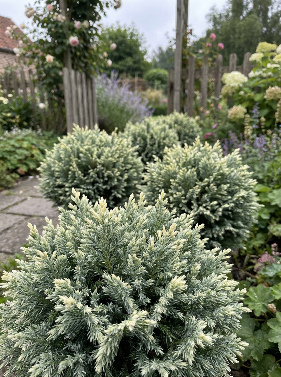 Chamaecyparis lawsoniana 'Pearly Swirl's' ist ein niedrig wachsendes, langsam wachsendes Nadelbaum.