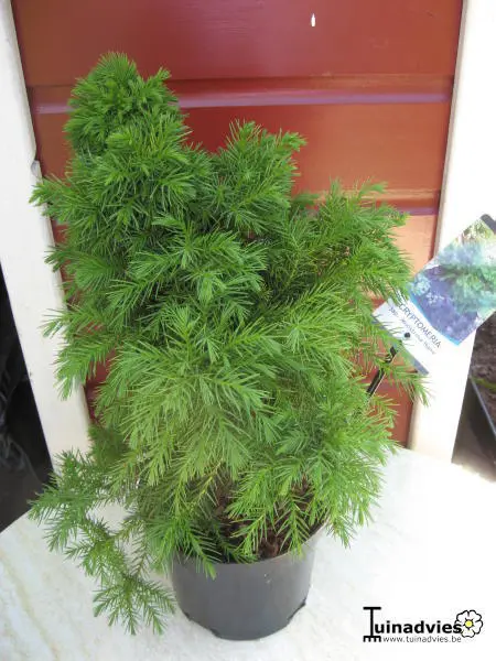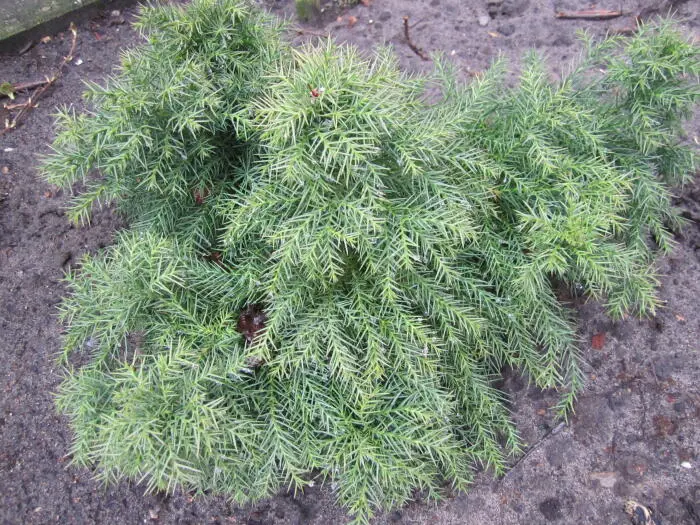 Cryptomeria japonica 'Monstrosa Nana' ist ein abgeflachter, runder Zwergnadelbaum mit unregelmäßiger Form.