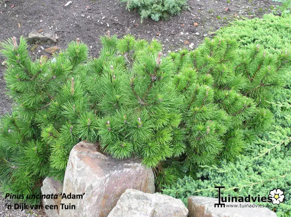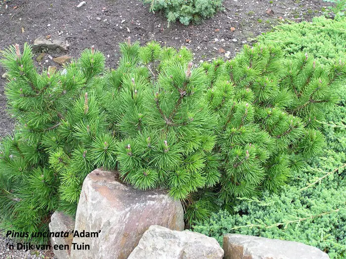 Pinus uncinata 'Adam' ist eine Zwergkiefer mit einer dicht bewachsenen, runden Form.