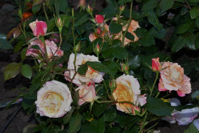 Rosa 'Brittannia' ist eine leicht duftende, wiederblühende Rose mit aprikosengelben bis lachsorangen Blüten.Die Blätter sind glänzend dunkelgrün.