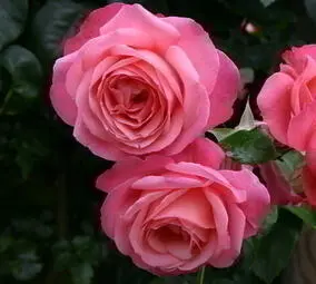 Rosa 'Rosanna' blüht mit gut gefüllten, doppelten, lachs-/korallenrosa Blüten.Nicht duftend, aber sehr krankheitsresistent.