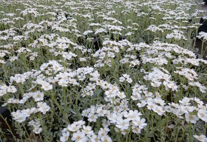 Achillea umbellata ist eine wunderschöne Bodendecker-Schafgarbe, die sich zu einem sehr niedrigen, flauschigen H.15-cm-Kissen ausdehnt. Unterdrückt das Unkraut dank ihrer allelopathischen Eigenschaften.