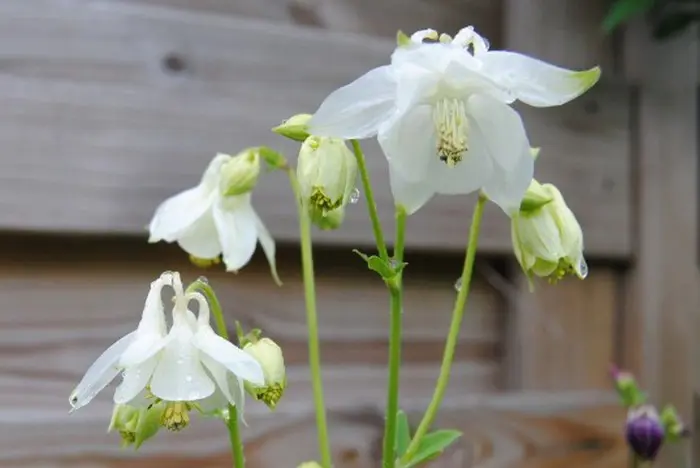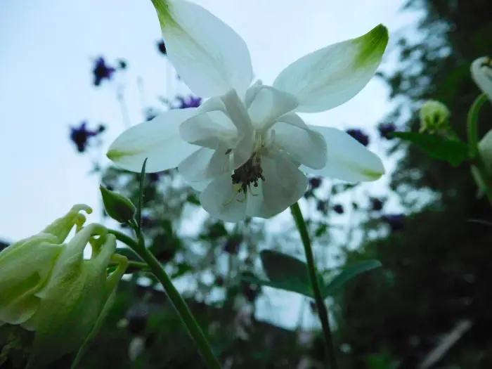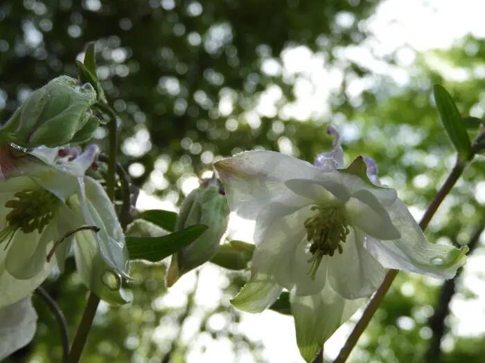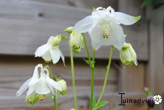 Aquilegia vulgaris 'Nivea' ist eine sehr anmutige Staude mit einzelnen weißen Blüten und gespornten Blütenblättern.