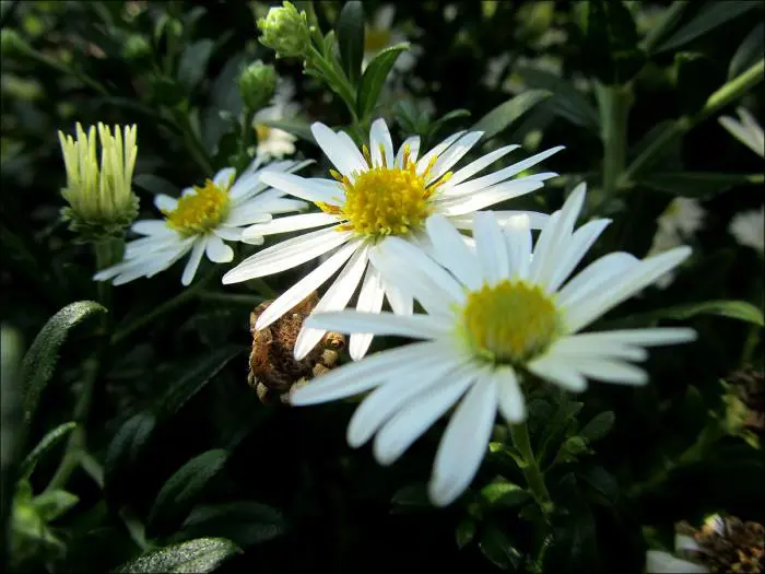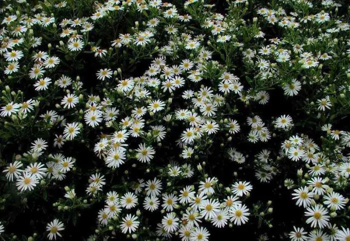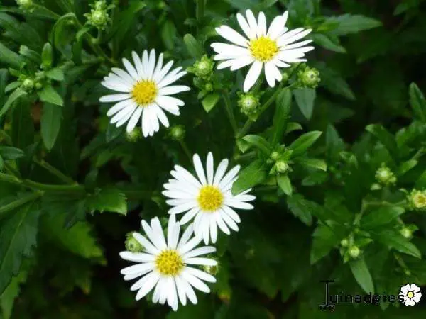 Aster ageratoides 'Ashvi' ist eine mehrjährige Pflanze, die ursprünglich aus Korea stammt und stark verzweigte, aufrechte Blütenstängel hat.