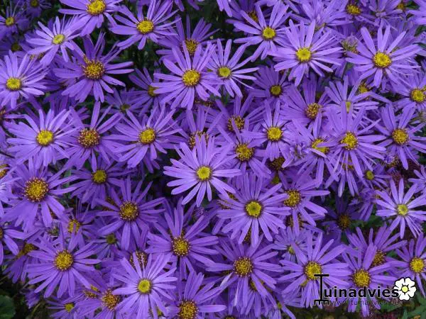 Aster tongolensis 'Berggarten' ist ein mattenbildender Aster mit weich behaarten, elliptischen, dunkelgrünen Blättern.