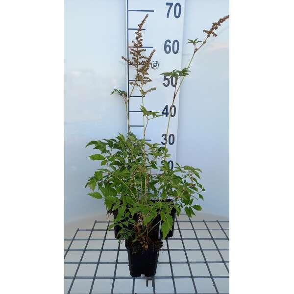 Astilbe x arendsii 'Cattleya' ist eine wertvolle Pflanze mit wunderschön gefiederten Blättern und einem leicht fliederfarbenen, federförmigen Blütenstand.
