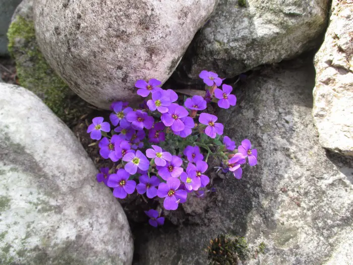 Passen in Steingarten, Blumenkästen und zwischen Steine.