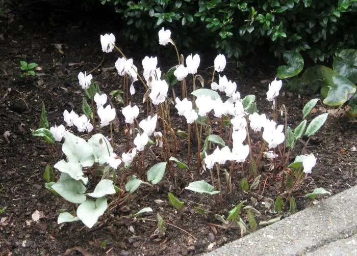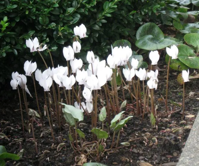 Cyclamen bevorzugen Halbschatten und gedeihen am Fuß von Sträuchern, in Steingärten und in kleinen sonnigen Ecken des Gartens.