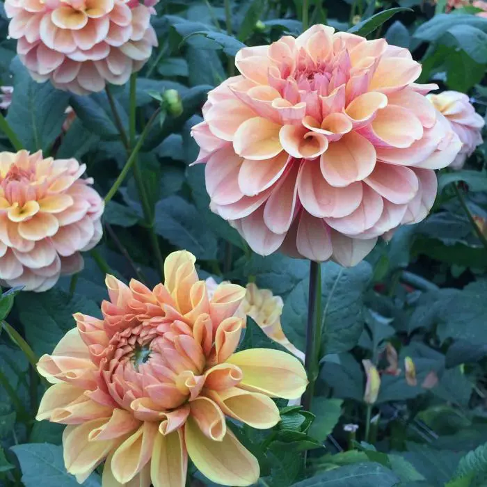 Dahlia 'Blah Blah Blah' ist eine sehr blühende, dekorative Dahlia mit gut gefüllten Blüten und breiten, flachen Blütenblättern.