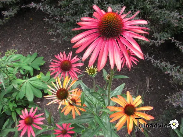 Echinacea 'Hot Summer' wechselt von Orange zu Rot.
