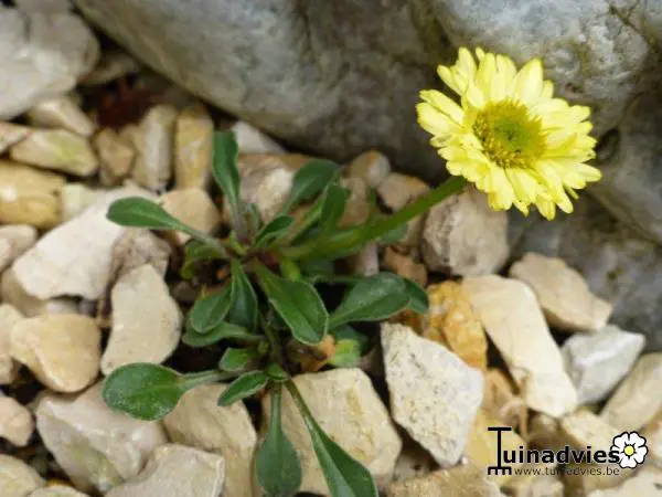 Erigeron aureus 'Canary Bird' bildet kompakte, klumpenbildende Pflanzen mit löffelförmigen, behaarten Blättern.
