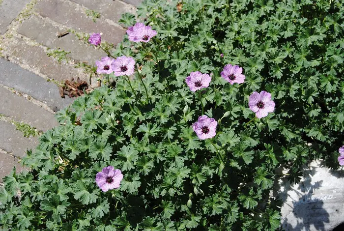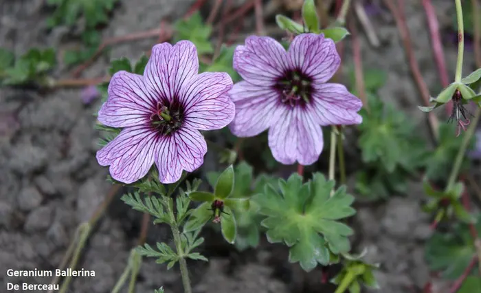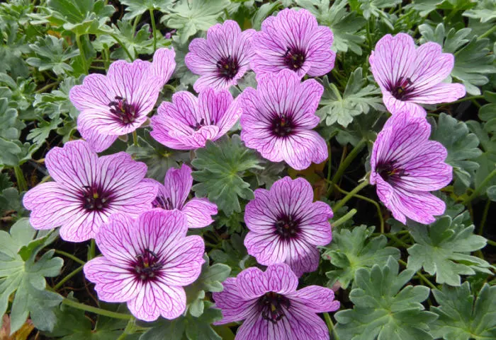 Geranium cinereum 'Ballerina' ist eine Zwergenart mit sehr geteilten, weichen Blättern und einer langen Blüte aus violett adernen, rosa Blüten.