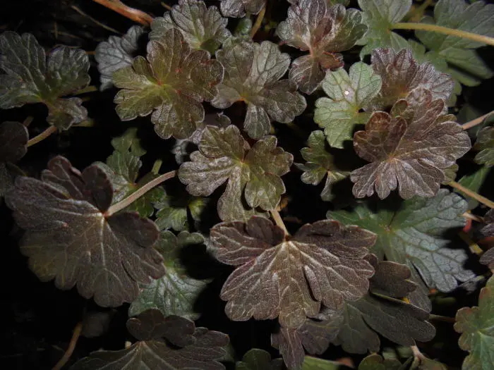Geranium 'Dusky Crûg' bildet einen kleinen Bodendecker mit kompaktem Wuchs.