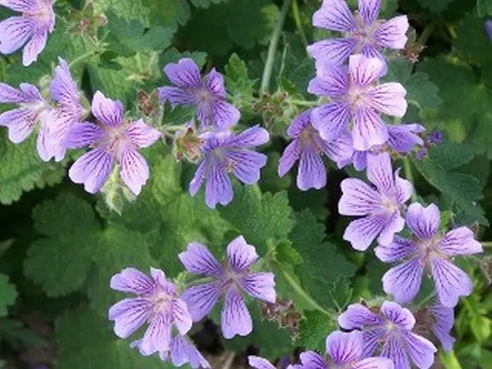 Geranium 'Philippe Vapelle' ist ein Hybrid von G. renardii x G. platypetalum und ist hauptsächlich in den Blättern zu sehen, blüht aber besser und häufiger als G. renardii.