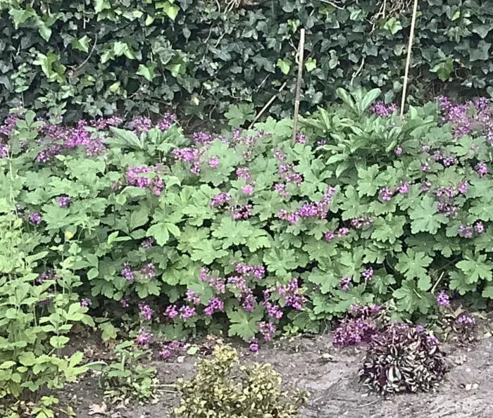 Geranium 'Japfu' ist eine mehrjährige Pflanze mit vielen kleinen rosa Blüten.