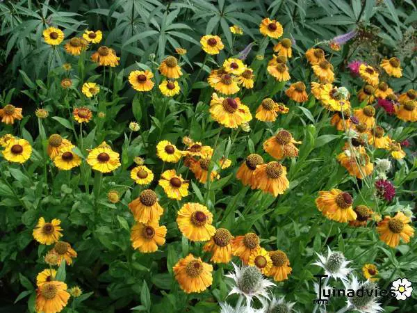 Die Blüten blühen bis zum ersten Frost und stehen auf kräftigen Stängeln mit lanzettförmigen, leuchtend frischen grünen Blättern.