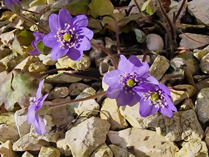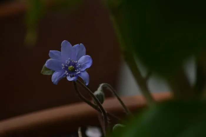 Hepatica transsylvanica 'Blue Eyes' ist eine kompakt wachsende Sorte.