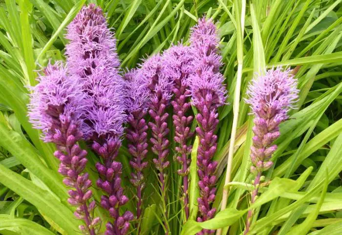 Liatris spicata 'Floristan Violett' sind wunderschöne, robuste Pflanzen für den Beet, besonders in großen Gruppen entfalten sie sich selbst.