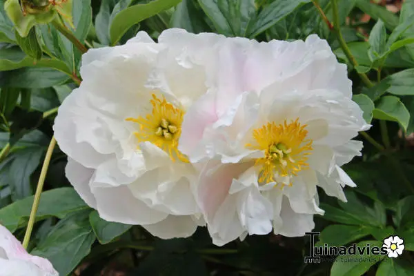 Die großen, schalenförmigen Blüten sind halbdoppelt und leicht duftend.