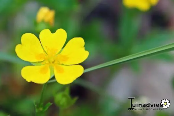 Potentilla aurea ist eine kleine, mehrjährige, kriechende Pflanze mit niedriger, buschiger Vegetation und glänzend grün gelappten Blättern mit silbriger Unterseite.