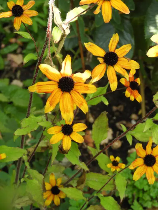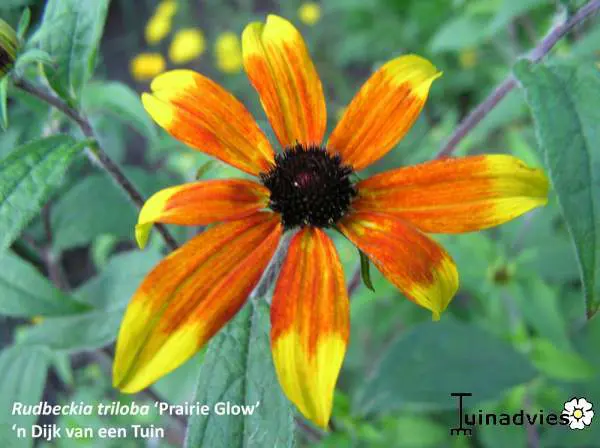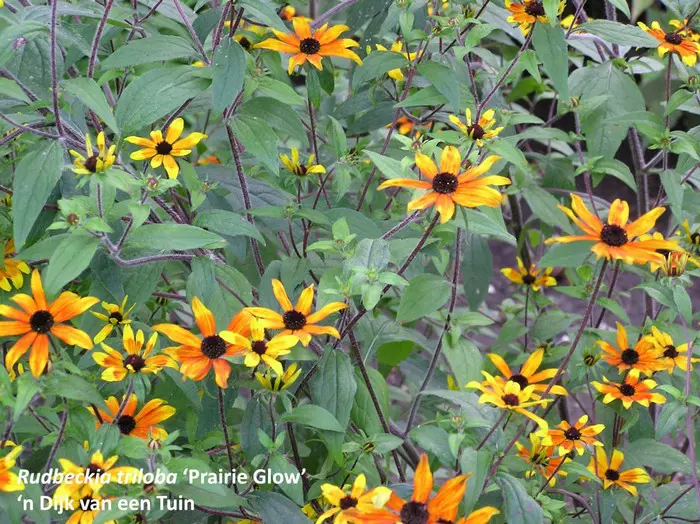 Rudbeckia triloba 'Prairie Glow' ist eine von zwei bis kurz lebende Pflanze mit dunklen, steifen Stängeln und elliptischen grünen Stängeln.