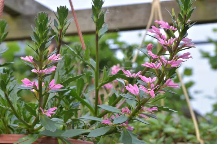 Scaevola aemula 'WHIRLWIND Pink' ist eine ideale Balkonpflanze, die sich gut für Hängekörbe eignet.