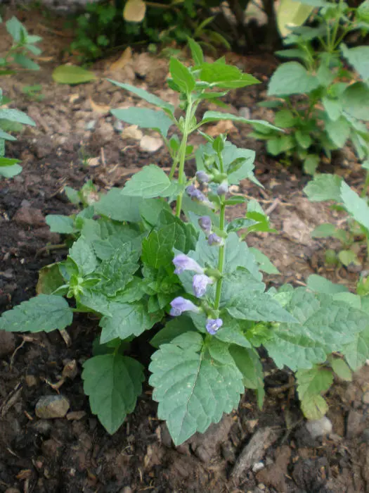 Scutellaria altissima aus Nordamerika bildet einen wunderschönen runden Büschel frischer grüner Blätter.