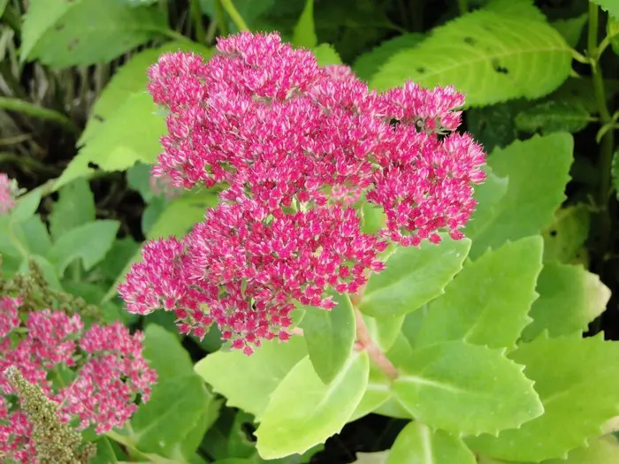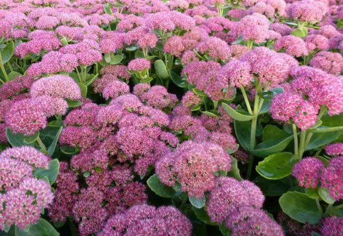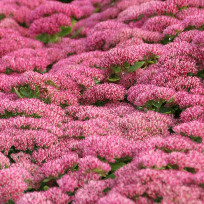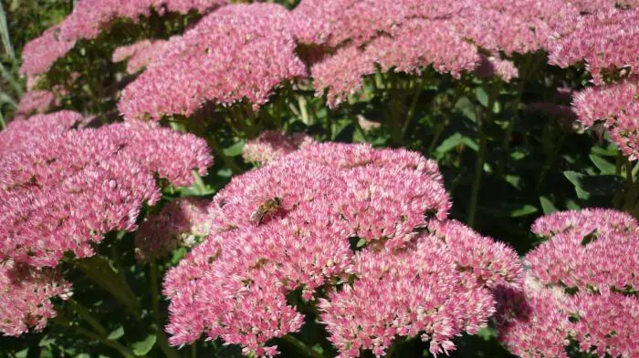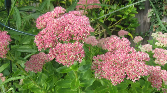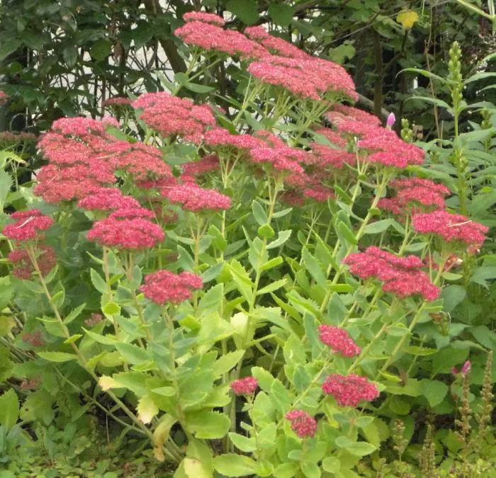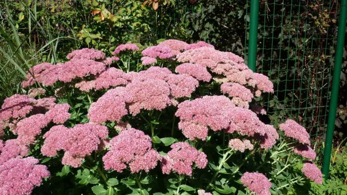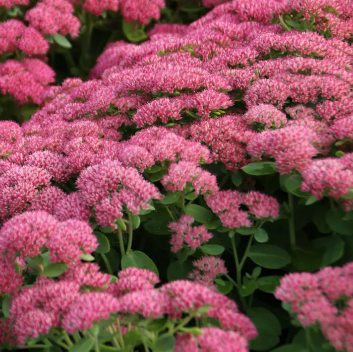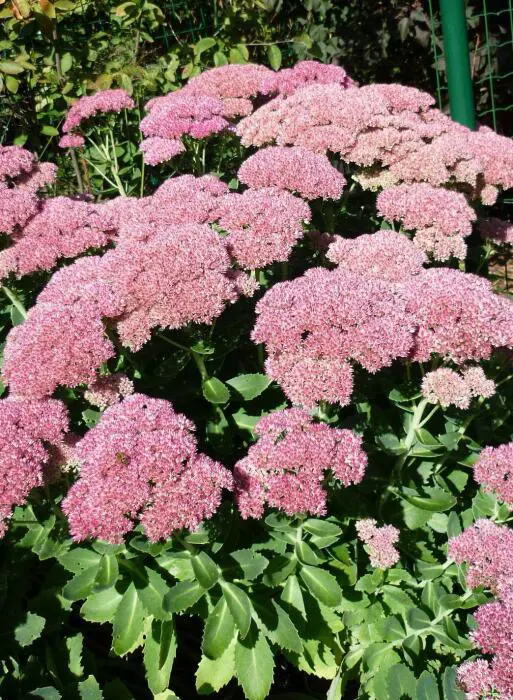 Sedum 'Herbstfreude' ist eine gute Pflanze für den Beet; schon früh im Sommer hat man eine wunderschöne Pflanze mit grünen Blüten, die im Laufe des Sommers allmählich von Rosa, Rosa-Rot zu Dunkelbraun-Rosa wechseln und eine wunderschöne Wintersilhouette haben.