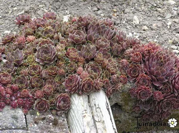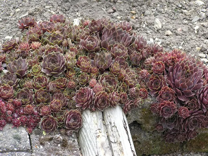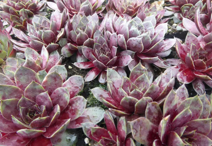 Rasenbildende Pflanzen, die Rosetten bilden, glänzend rote Blätter mit grüner Basis – äußerst geeignet für Steingärten zwischen Steinen, die durch die Sonne sehr heiß werden können, wo selbst wenig Feuchtigkeit eindringt.
