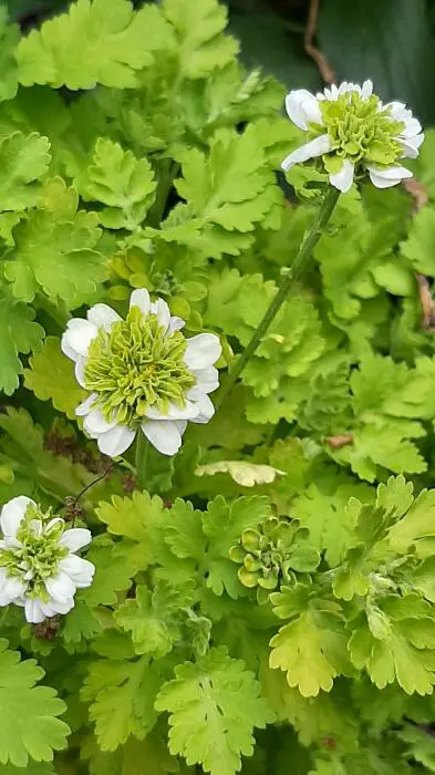 Nach der Blüte erscheinen die flachen Samen mit 'zinnenartigen' Kanten.
