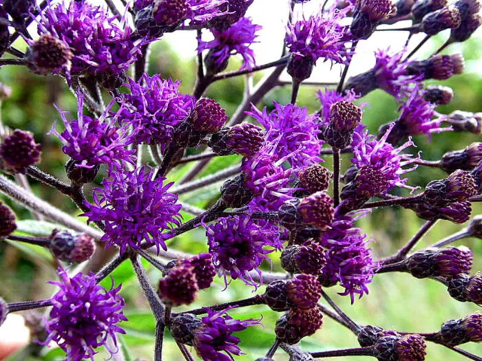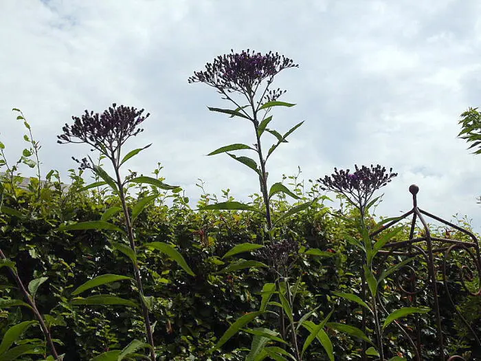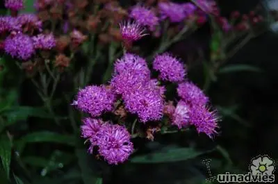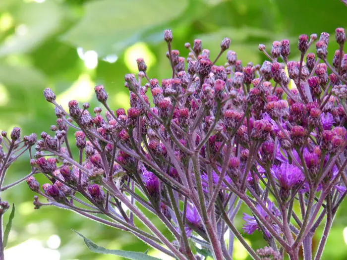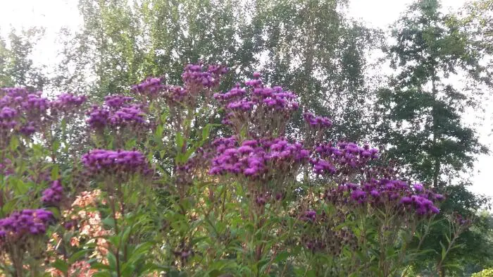 Am Ende des Sommers blühen oben die Korymbs kleiner Pompons von wunderschönem leuchtendem Violett-Lila.