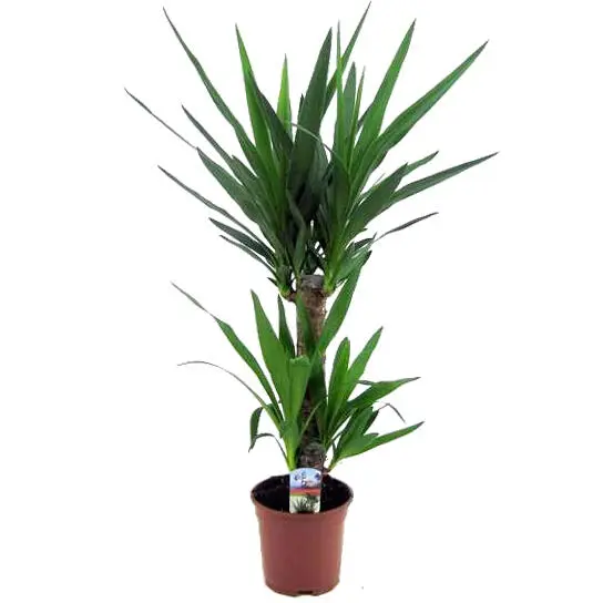 Die Yucca wird als Zimmerpflanze in zwei Varianten angeboten. Die Yucca aloifolia mit langen, speerförmigen Blättern. Die scharfe Spitze am Ende verursacht leicht Verletzungen. Y. elephantipes hat ein breiteres, schwächeres und weniger gefährliches Blatt. Die Blätter beider Arten sind dick und hart und können viel Feuchtigkeit speichern. Daher kommt der Yucca in trockener Umgebung sehr gut zurecht.