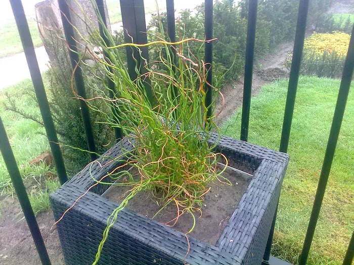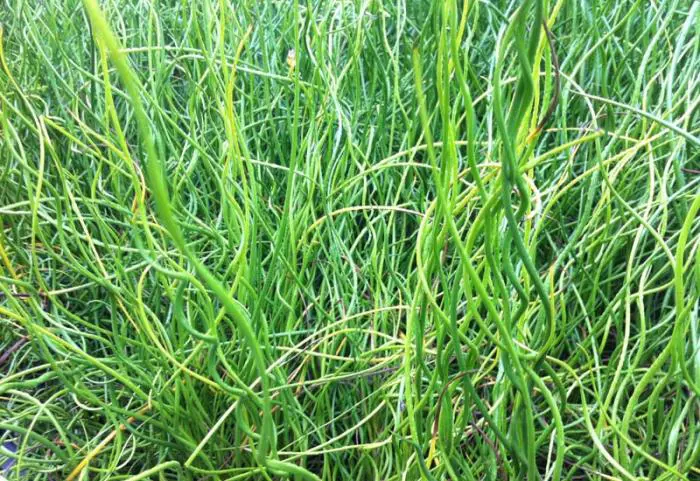 Ein recht rauer Büschel, dessen gelbgrüner Stängel spiralförmig verdreht ist.