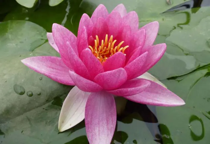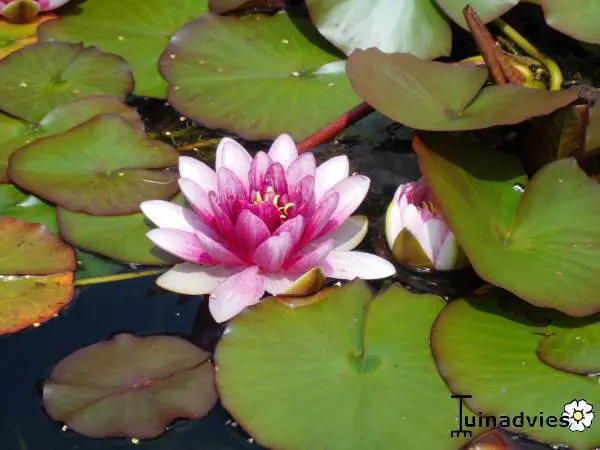 Nymphaea Attraction ist eine Wasserpflanze für stehendes Wasser, sie toleriert fließendes Wasser nicht und hasst es, z. B. von Brunnen zu spritzen.