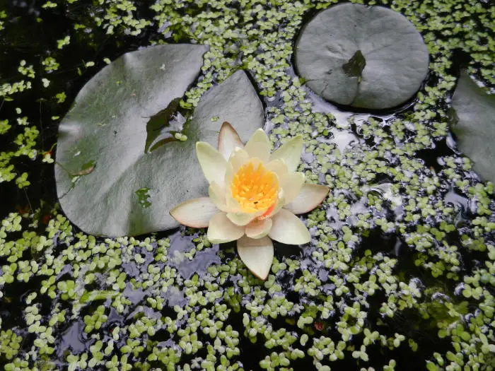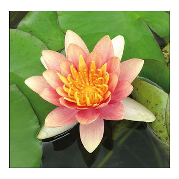 Nymphaea 'Aurora' bildet cremegelbe Knospen, die sich gelb öffnen, schnell orange zu rot werden und ein gelbes Herz haben. Leicht duftend.