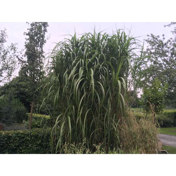 Miscanthus ist eine Grasart (kein Schilfrohr) und dieser Riesenvogel wächst leicht bis zu 250 cm hoch, mit einer anmutigen überhängenden Oberseite, kann sich in einem Jahr verdoppeln und benötigt daher viel Platz.