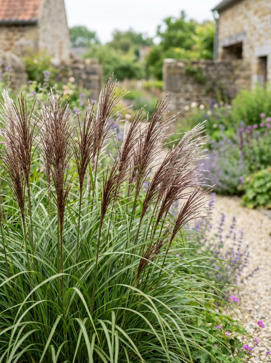 Miscanthus sinensis 'Africa' ist eine steif aufrechte Pflanze mit auffälliger kupferroter Färbung im Herbst.