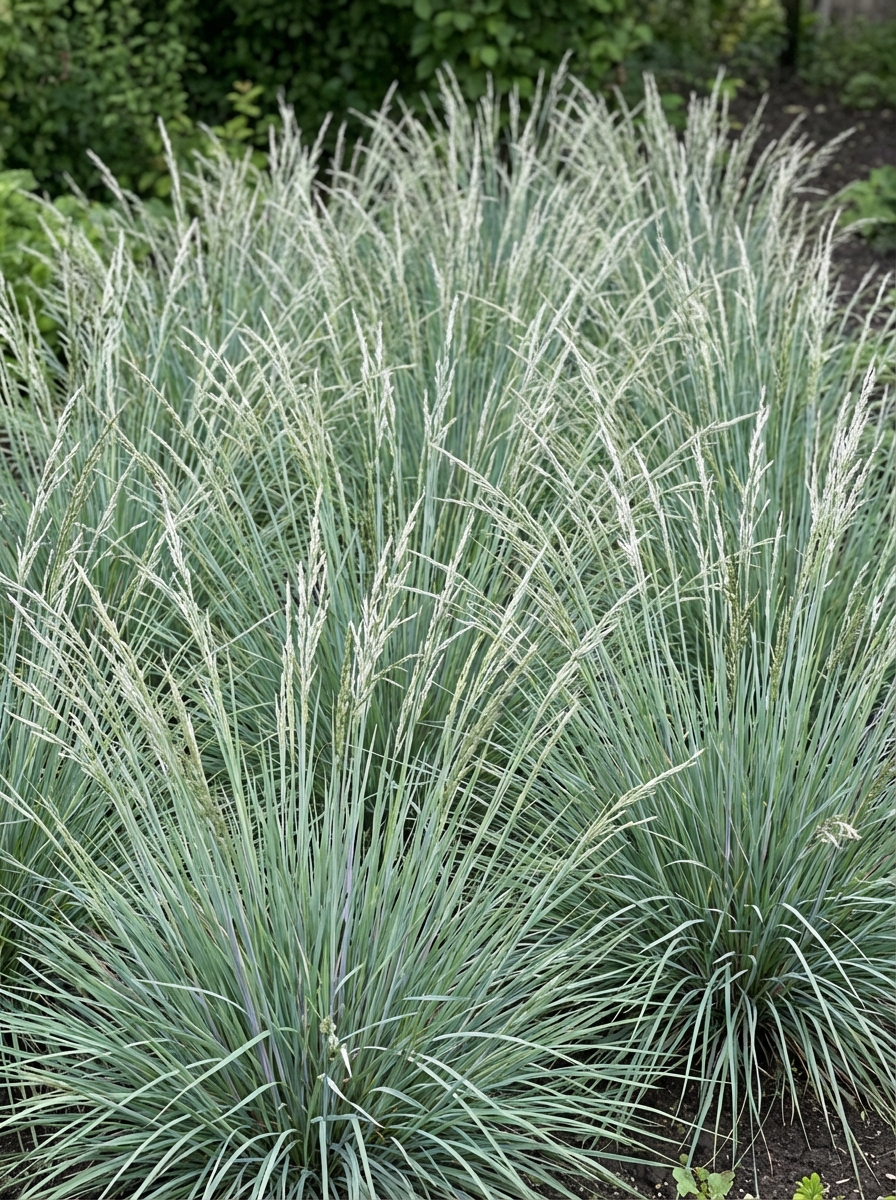 Steife, aufrechte Gräser mit blau-grüner Farbe.