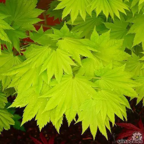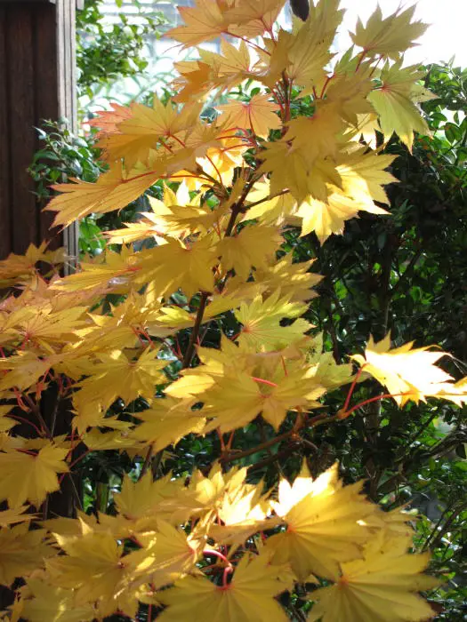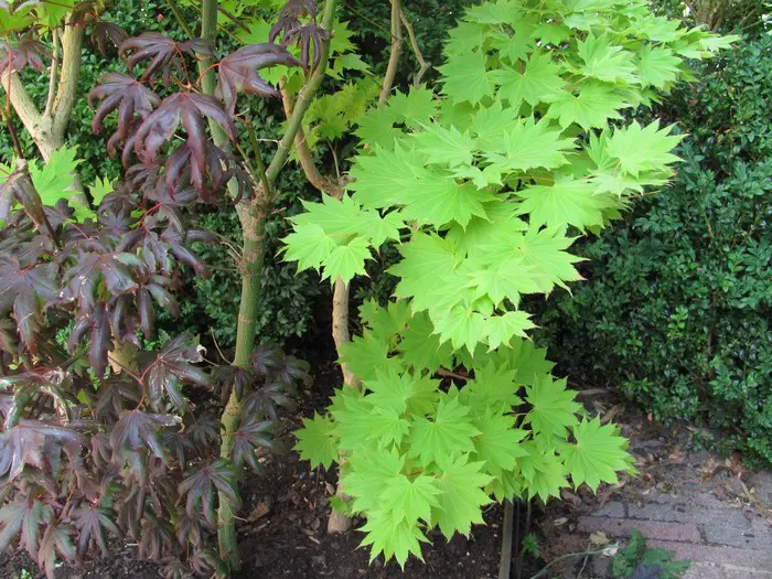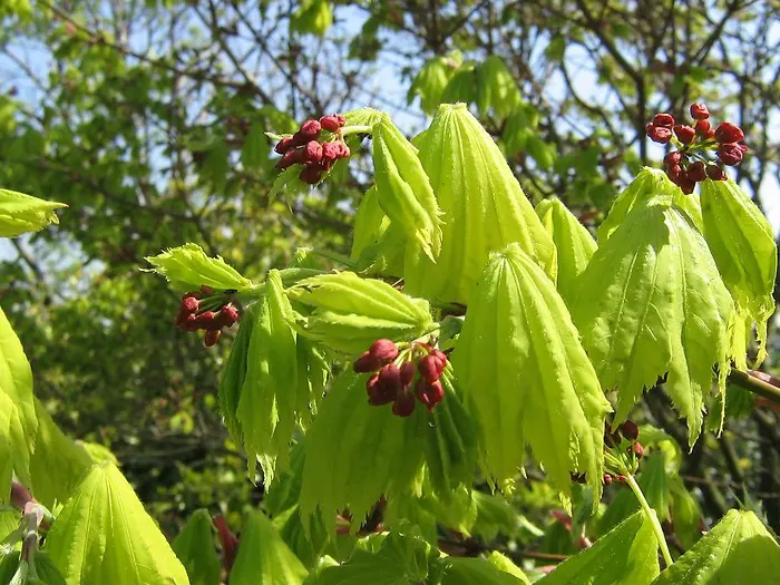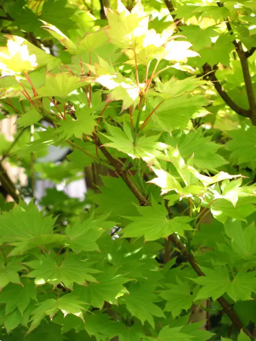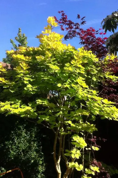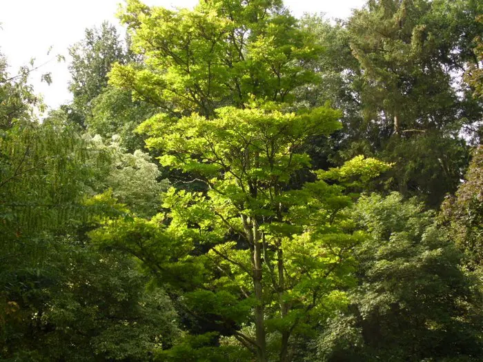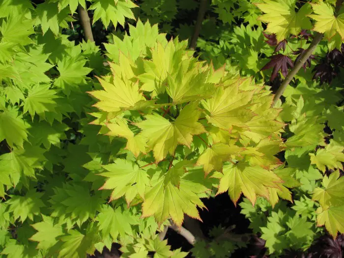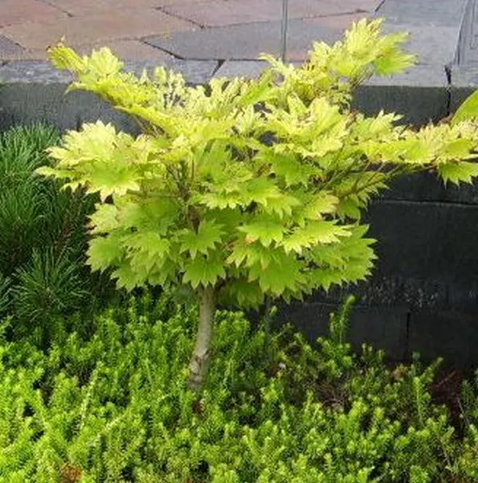 Acer shirasawanum 'Aureum' ist ein langsam wachsender Ahorn mit einer dicht verzweigten Krone und hängenden Ästen.